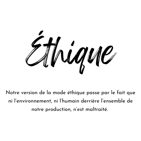 Nous avons pensé à chaque étape qu'implique la production d'un vêtement et nous croyons qu'il est possible de promouvoir la mode, sans compromettre notre planète.