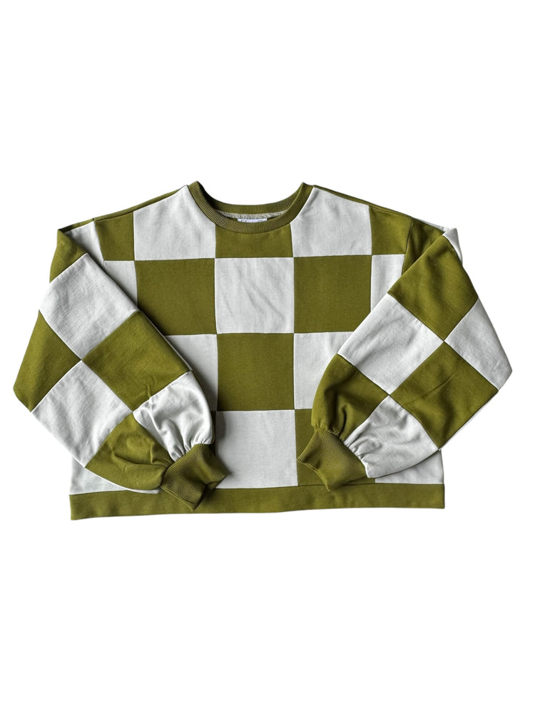 Pull Colorblock Damier Avocat et Teal Pâle