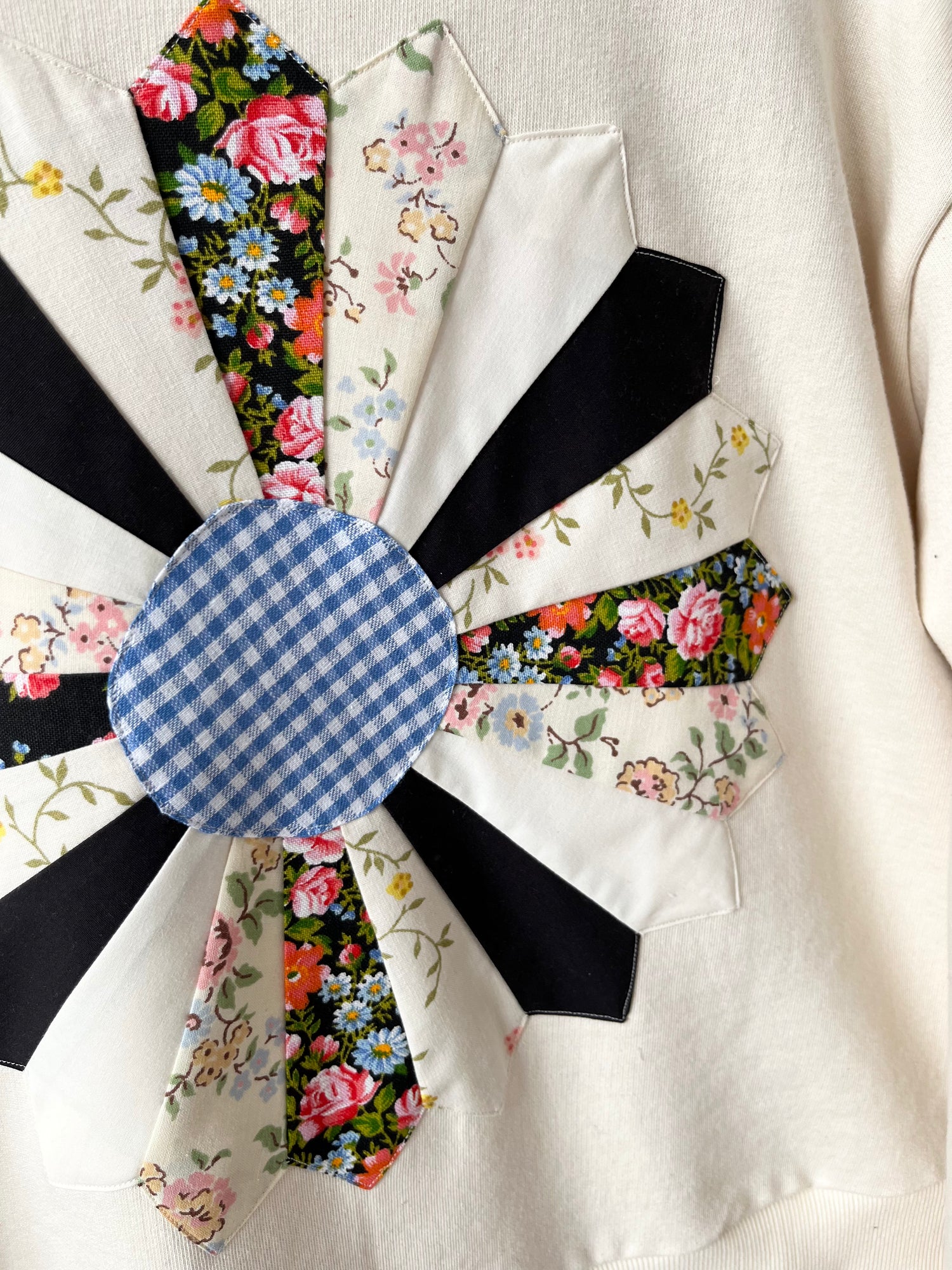 Fabriqué de coton ouaté bio ce crewneck avec son appliqué courtepointe coloré et original rendra ton look confo-casual absolument splendide. Porter ton linge mou n'aura jamais été aussi agréable. Taille unique et ample qui convient aux taille S à XL.