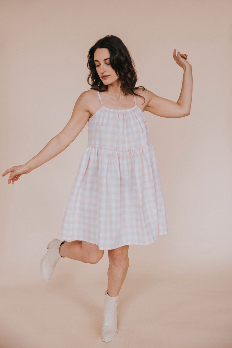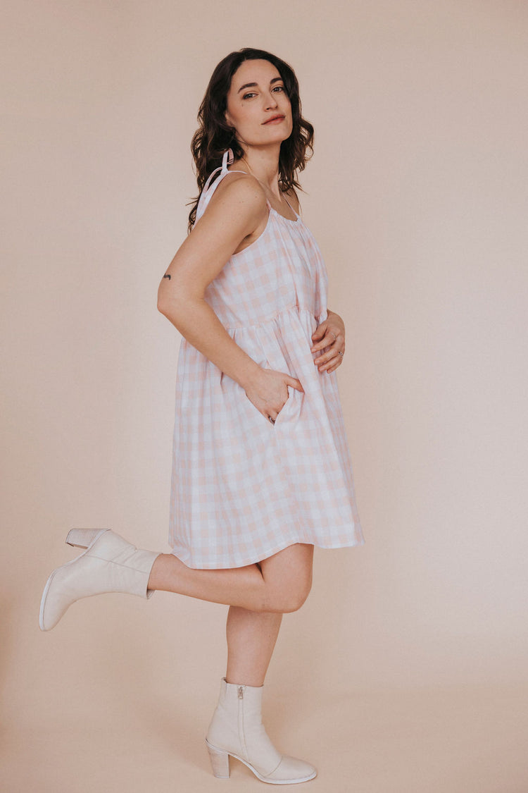 Fabriquée dans un coton léger et dotée de fines bretelles ajustables, cette robe d’inspiration babydoll avec sa coupe fluide et évasée est une option idéale pour un look décontracté qui allie style et confort. Son motif vichy classique dans des tons de pêche rosé procurera une touche de douceur à votre garde robe estivale.