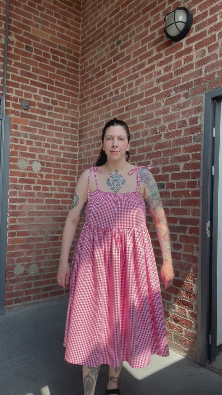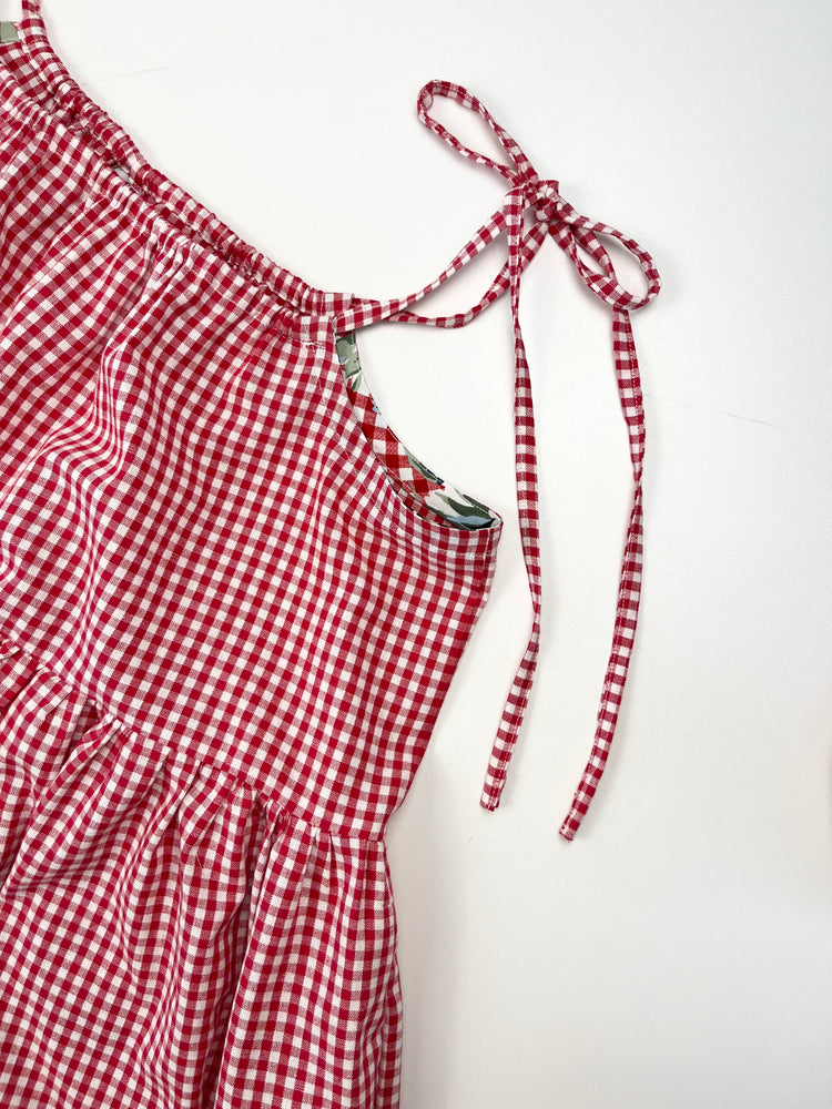 Robe midi à bretelles vichy rouge