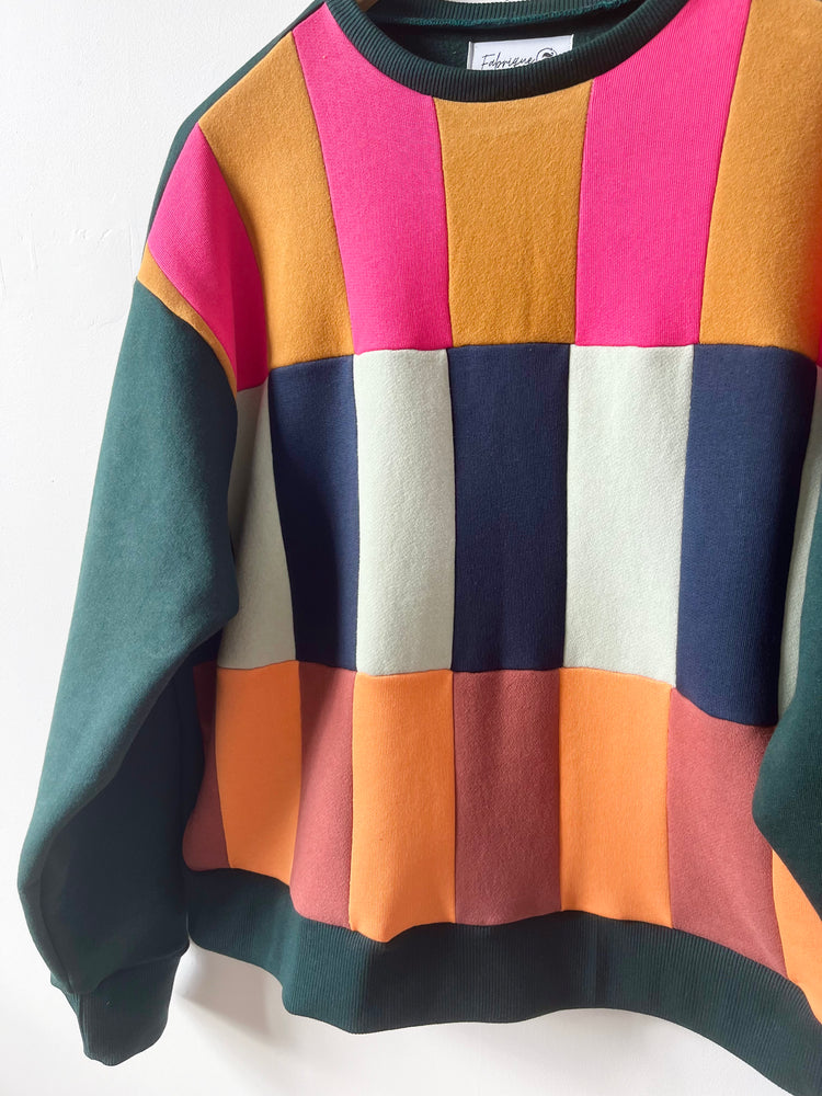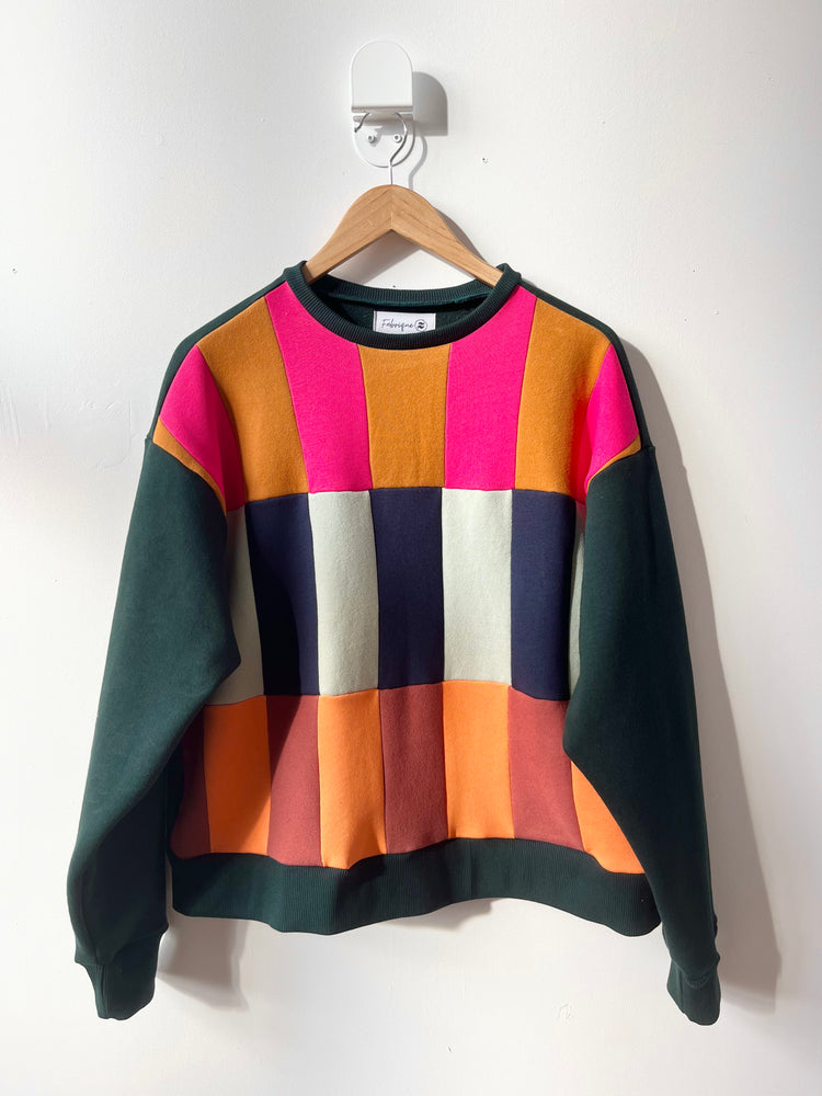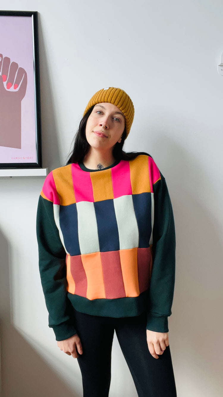 Made from cotton fleece scraps assembled in Colorblock, this crewneck with its vibrant color scheme is sure to turn heads. This Colorblock series aims to upcycle our own scraps and those of other designers who want to reduce the amount of textile destined for the trash. Wearing trash has never been so splendid.