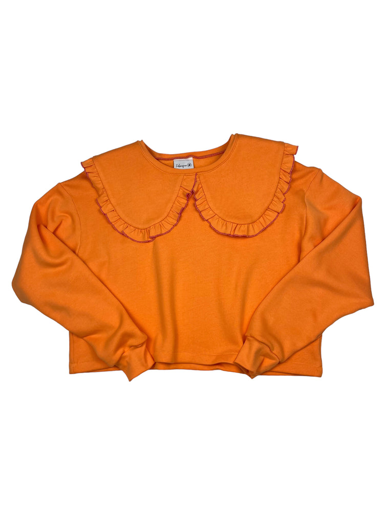 Made from organic cotton, this sweater with its large frilly collar and loose fit will make you feel as comfortable as it is stylish.